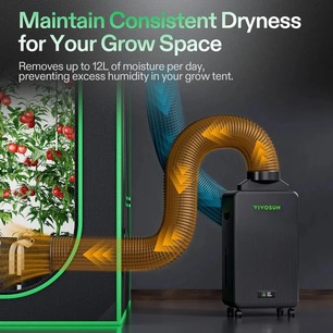 Maintain ideal conditions in your grow tent with the Vivosun AeroDrain D12 — a compact, intelligent dehumidifier designed to optimise plant health and environmental stability. Built for grow tents up to 1.5 × 1.5 meters (5×5), this unit integrates seamlessly with the Vivosun Smart Grow System, offering remote monitoring and automated adjustments via the Vivosun mobile app.