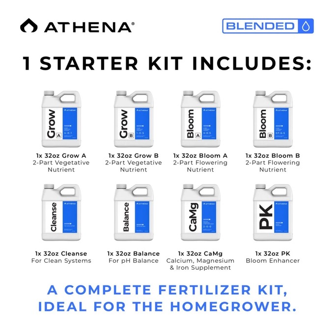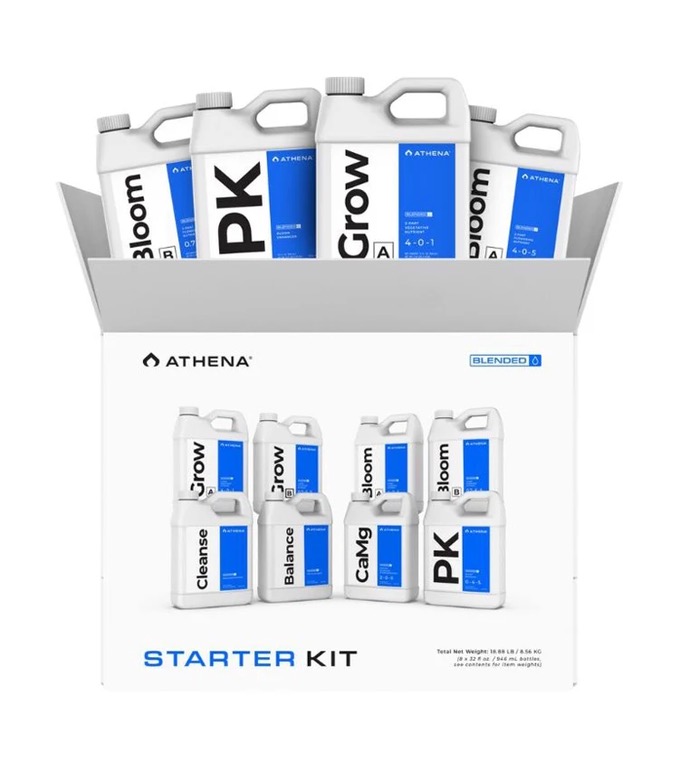 This starter bundle contains all core Athena nutrients, including Grow A/B, Bloom A/B, and essential additives such as Balance, CalMag, PK, and Cleanse, providing a complete feeding program from early vegetative growth through to late flowering. Perfect for new Athena users, trial grows, or small-scale gardens, the kit ensures you can run the entire Blended program without purchasing large bottles upfront.